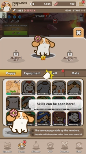 3、通过完成任务、击败敌人来获取经验值,以此提升小狗的各项技能与属性,打造出最强的小狗英雄。