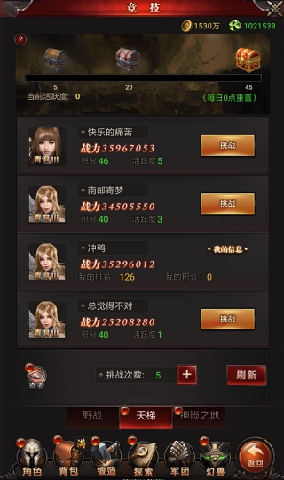 这就是天梯玩法的主界面,能看到界面上显示着不少其他玩家,玩家可以自主挑选想要挑战的对手。