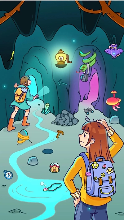我们在精美的图案下隐藏了很多有趣物品哦,请擦亮眼睛,伴随轻快减压的音乐,动用观察力和脑力,一一找出它们。