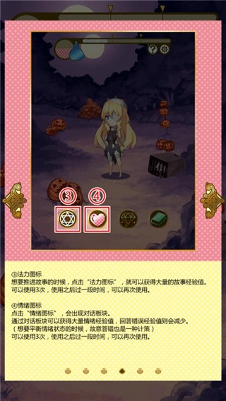 想要推动故事的时候,点击“法力图标”,就可以获得大量的故事经验值。