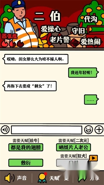 5、逻辑鬼才:剧情结束心情为0,剧本推荐质疑单身,不带天赋就只有一个敷衍选项,选完剧情结束,解锁逻辑鬼才