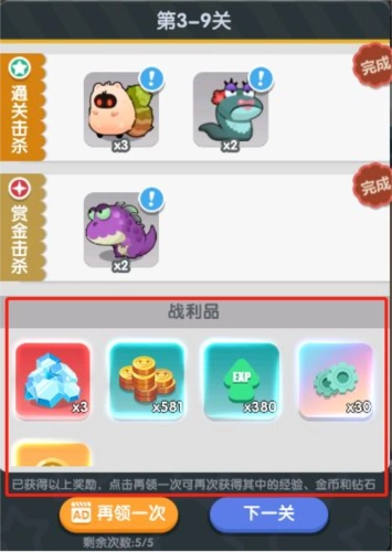 1.首通关卡赠送,通关关卡后看广告可以重复获取奖励,每天限5次。