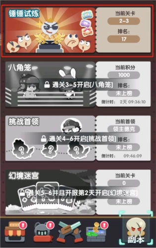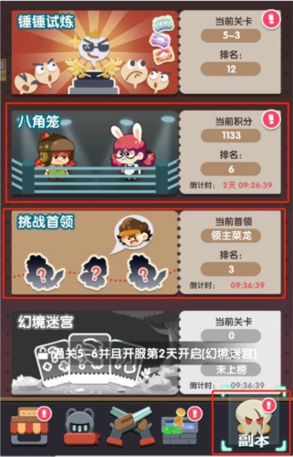 4.挑战副本即可获得奖励:挑战首领(副本),锤锤试炼(副本),幻境迷宫(副本)