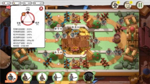 防御塔提供三种升级方向,涵盖防御、攻击、攻击距离以及黄金税收这几个方面。其升级机制和建筑升级的模式相近。