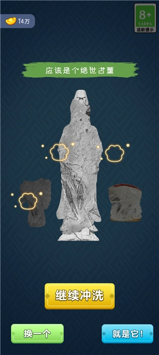 2、任意挑选一块石头进行勾钓操作,待结果出来后从三个选项里选择其一,挑选出自己喜欢的古董。