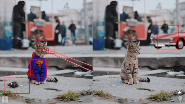 1、比较场景中的各种异同,完成游戏中的制定目标。
