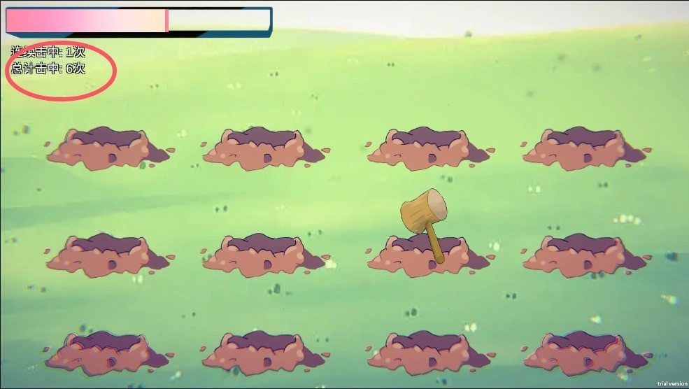 3、左上角会显示出连续击中的次数,以及一共击中的次数。