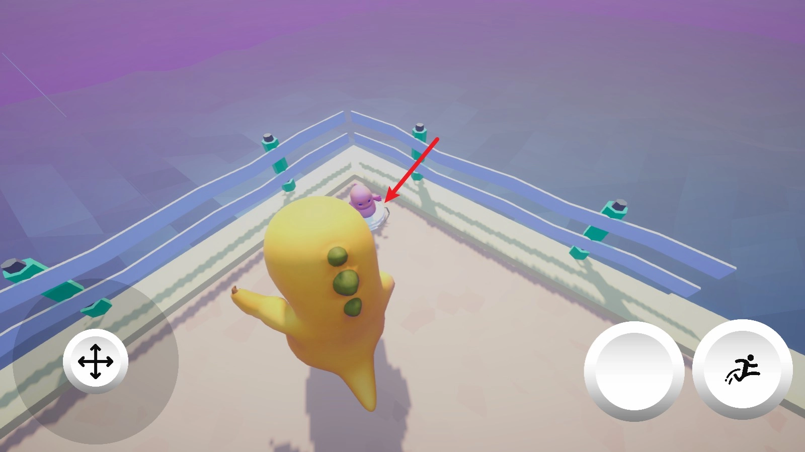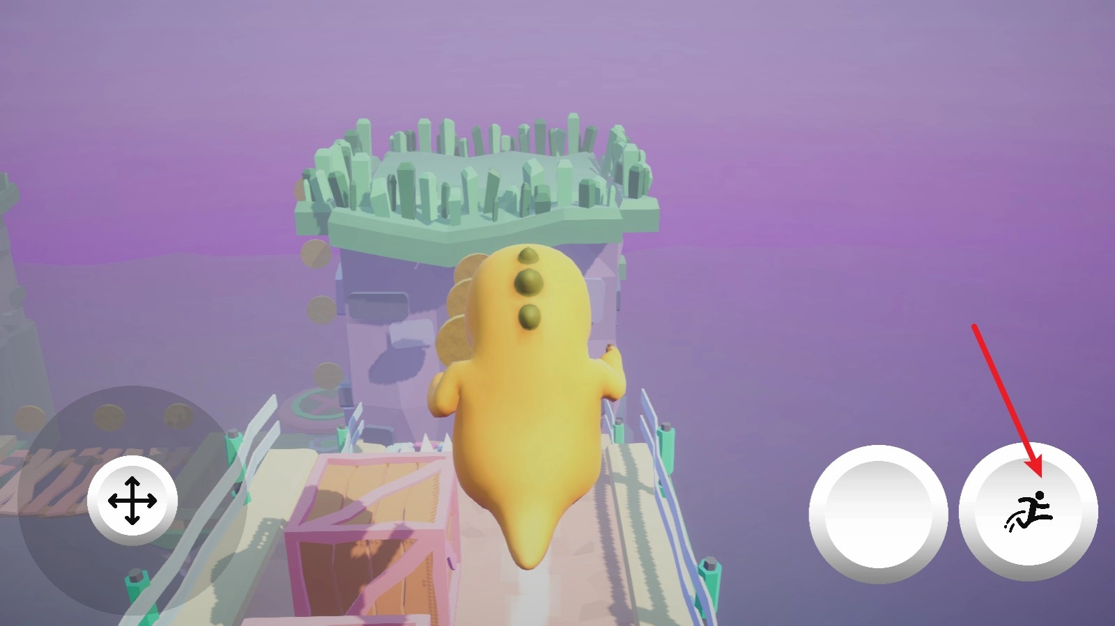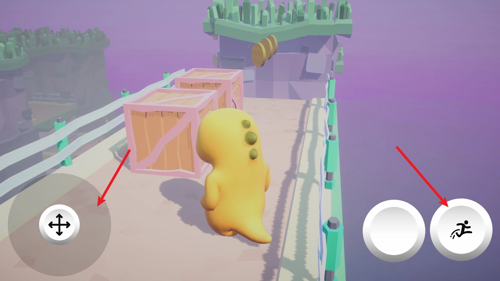 进入游戏后,我们会直接出现在地图里,左侧的摇杆用来操控移动,最右边的按钮则能实现跳跃动作。