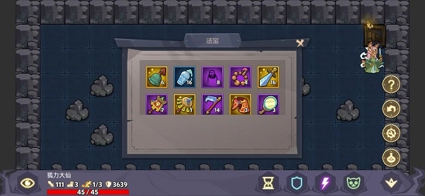 15层攻略:若遇到的boss是三王子,建议优先集火打掉黑皮怪,之后保持走A输出即可;要是boss是摸狗护法,依旧采用召唤老鼠来承受伤害的策略——14层购买1个八景灯,正是为了确保摸狗护法的单次攻击无法直接秒杀老鼠。