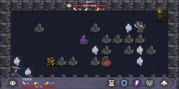 30层的打法分两种情况:要是遇到的boss是长公主,得先把小怪清理干净,拿到墓碑道具,之后每回合攻击一次boss,同时召唤一只老鼠来承受伤害——每回合都会被boss攻击,如果反击触发次数太多导致护盾值不足,那就会失败;要是boss是军师长眉,策略则是优先攻击距离近的目标,打boss时同样采用每回合攻击一次、召唤老鼠抗伤害的方式。