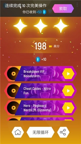 2、跟着节奏走就对了,别偏离反弹球的轨迹!用酣畅淋漓的连击,把玩家朋友的分数都比下去!