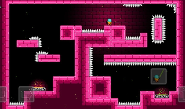 2、关卡中设置了非常多的尖刺和障碍,考验玩家操作,甚至有时候令人抓狂。