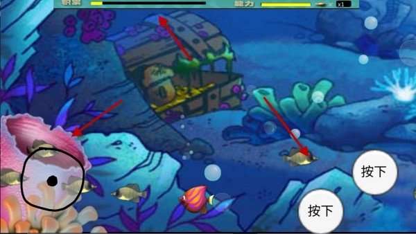 2、小鱼也有属于自己的专属能力,点击右侧的按钮就能使用,不过得等上方的能力值攒满了才能用。