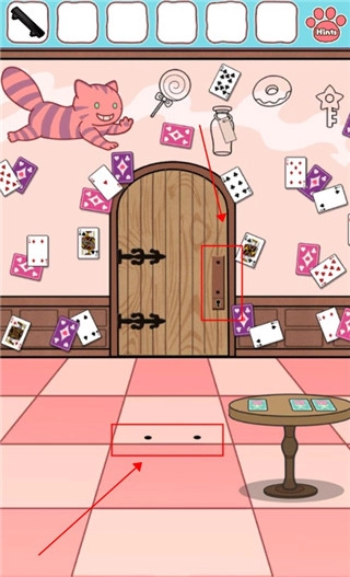 6、点击从墙上下来的猫猫就可以获得钥匙