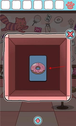 5、将刚才获得的甜甜圈的卡牌放置其中,然后按照如图显示的顺序以此打开