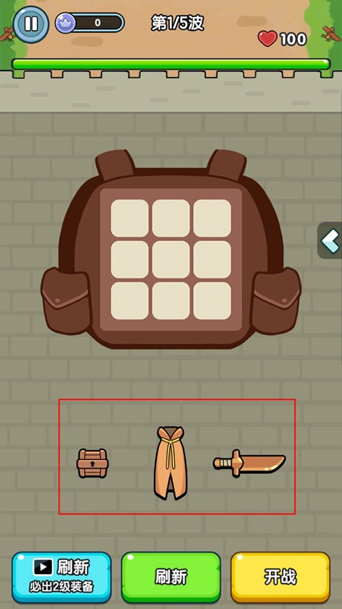 1、玩家进入关卡前,可先挑选装备带入游戏,把下方装备拖进九宫格就行,只要空间足够就能全部携带哦。