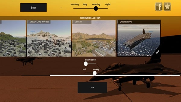 2、可以选择一天中的某段时间、地形以及跑道;