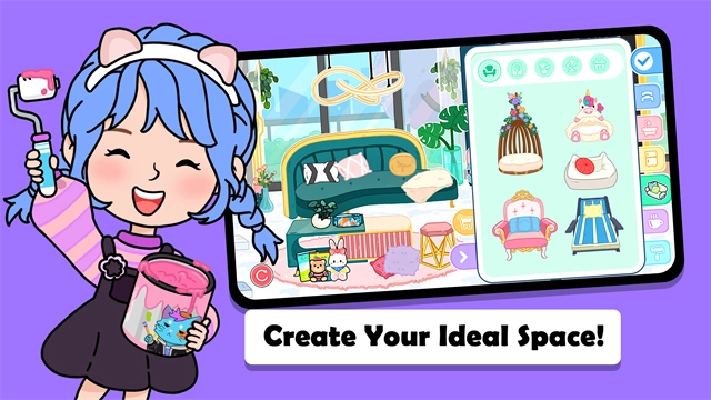1、我的家:你是否还记得过家家的游戏?假装扮演父母,细心照料蹒跚学步的孩子。在“我的家”里,你能够为家庭成员精心装扮,还可以为他们安排丰富多彩的日常活动,比如做饭、与姐妹嬉戏、洗澡、讲述睡前故事等等!