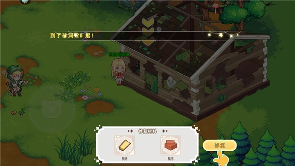 6、入住小镇后,我们会得到一座房子,不过屋子有些破旧,得先修缮一番。点击材料堆放的地方,就能拾取所需的材料了。