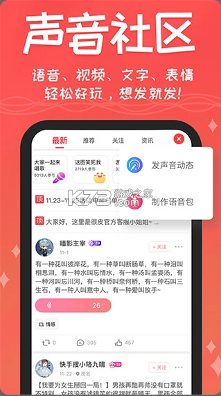 3、声控社区活跃,好声音汇聚,交友新体验。