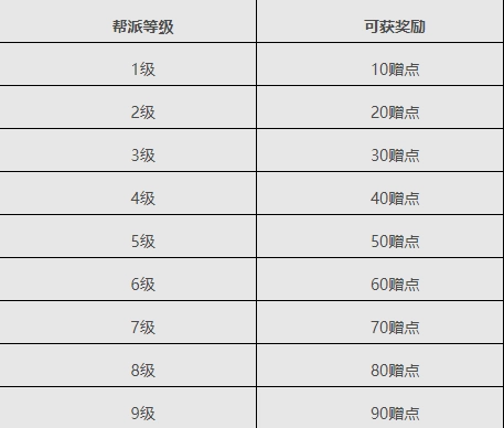 帮派成员荣誉等级每提升1级,使用赛马赠点包、竞技赠点包、财富赠点包和如意赠点券时可额外获得10赠点。