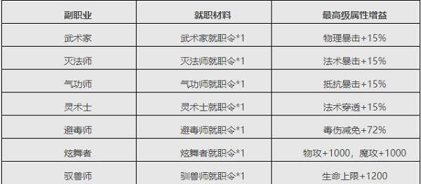 侠士们可以通过提升副职业的等级来获得更高的属性增益。