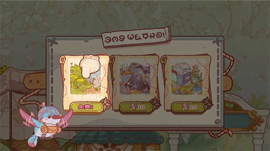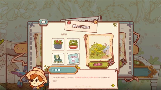 5.接下来就可以去探索森林了,不过在此之前,你得找这只小鸟买一张地图。第一张地图是免费的,买了之后还会解锁新的家具物品。