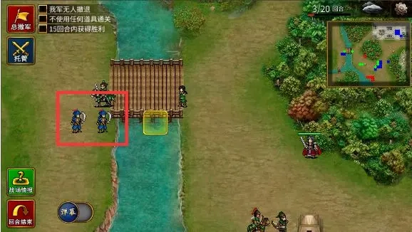 这关就是个护送农民的关卡,难度就是保住农民不死,当然这也是印绶条件。隐藏就是右边水池里的花:大斧x1。