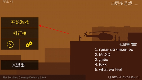 2、由于射杀僵尸防御不是中文版的,所以需要进入到主页面点击设置。