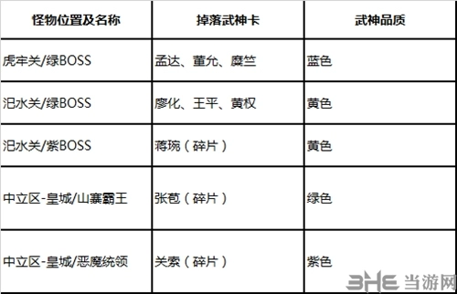 同时,古战场和中立区BOSS也将掉落不同的武神碎片,具体如下: