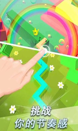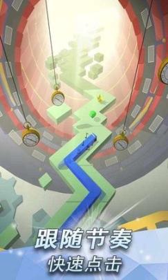 2、难度逐渐的增加,更多的障碍物随机的出现,掌握音乐的节奏进行躲避,突破手速极限;