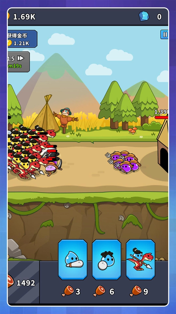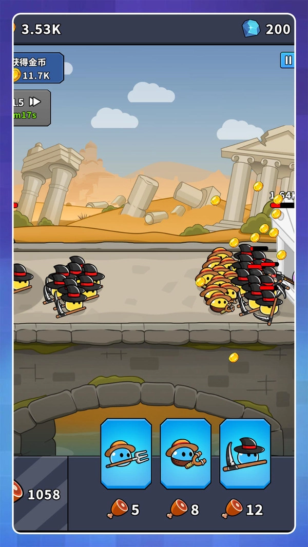 3、通过赢得战斗获取金币与各类道具,利用这些资源对士兵进行升级以提升其属性,还能解锁新的兵种,从而不断增强整体战斗力。