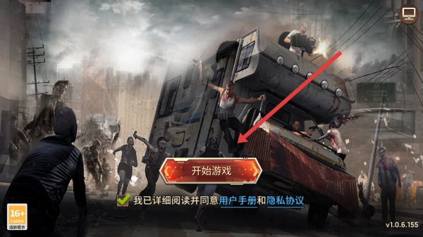 2、在启动页,勾选“我已详细阅读并同意用户手册和隐私协议”,点击【开始游戏】,正式进入丧尸求生世界。