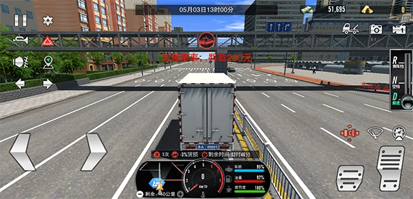 5、运输过程中,玩家需借助下方地图导航前往运输终点,途中请务必系好安全带(其对应刹车上方的红色图标),同时要严格遵守交通规则,避免发生撞车等事故。一旦出现违规或事故情况,不仅会被罚款扣分,还会导致货物损坏。