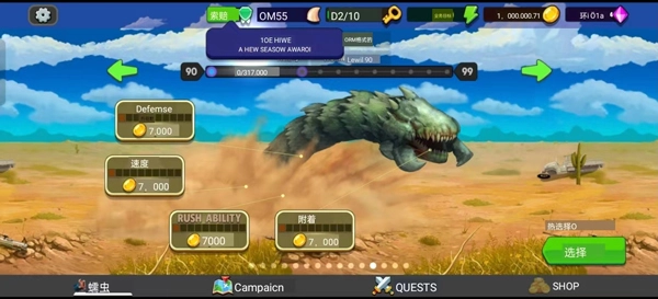 2、每完成一个等级就可以给大虫进行一次能力的晋级,玩家可以自行决定手中的大虫会往哪个方向发展。