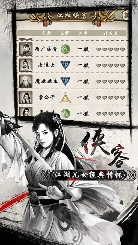 《单机群侠传》是一款武侠题材的生存探索建造游戏。它以水墨风格为画面基底,融合文字叙事与探索建造玩法,构建出一个别具一格的武侠江湖。游戏提供四位各具特色的角色,每个角色都拥有专属的剧情脉络。玩家在闯荡江湖、探索世界时,需时刻留意角色的身体状态,巧妙规划资源分配,确保角色能够在危机四伏的环境中生存下来,同时逐步打造并完善专属于自己的一方家园。