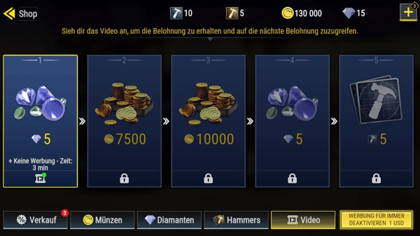 每日看完商店广告至多可获取2.25w金币
