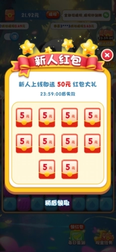 2. 消除方块即可赢取红包奖励,使你在游戏过程中既能体验消除的乐趣,又能收获实实在在的奖励。