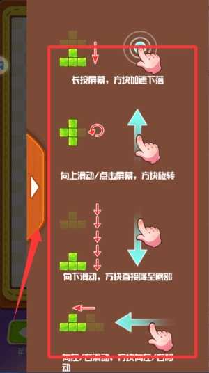 1、启动游戏后先适应控制方式,通过滑动屏幕来旋转和移动方块,尽量填满每一行避免空洞出现。
