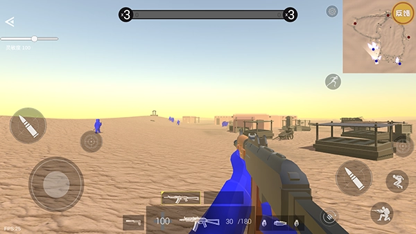 5、右上角设有地图,对战双方需在战场上击杀指定数量的敌人,率先达成目标的一方将获得胜利。