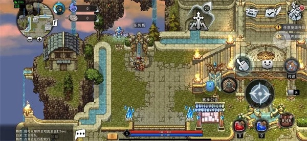 3、进入游戏后,左边控制角色的移动,而右边则是攻击、背包等按钮;