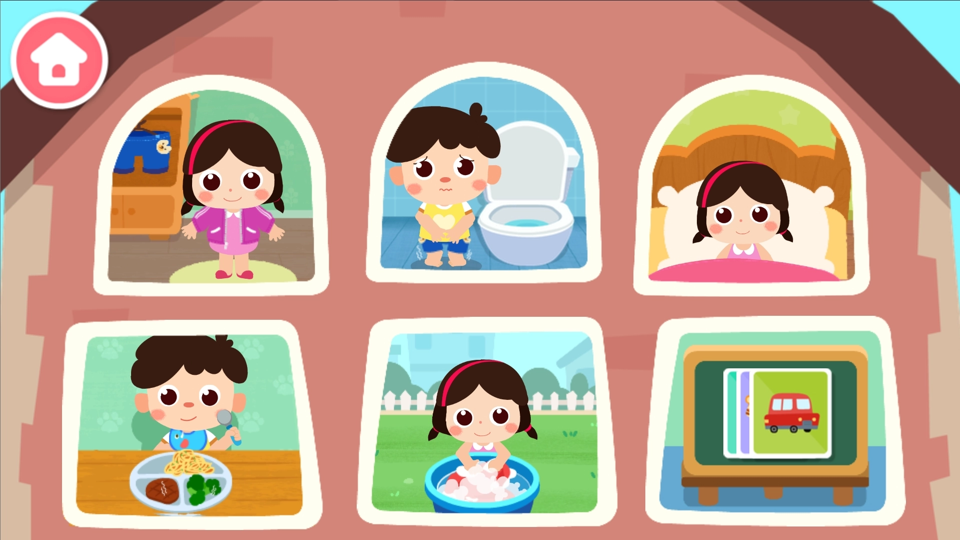 1、运用3D互动技术对家庭生活场景进行真实还原,助力孩子在熟悉的环境里学习生活技能。每一个场景均由儿童教育专家精心打造。