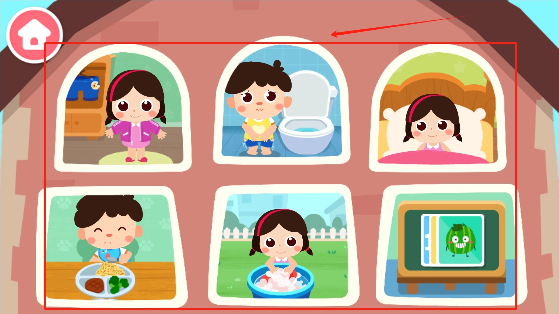 2、可以看见有多个可以玩的场景,都是生活中基本的场景。