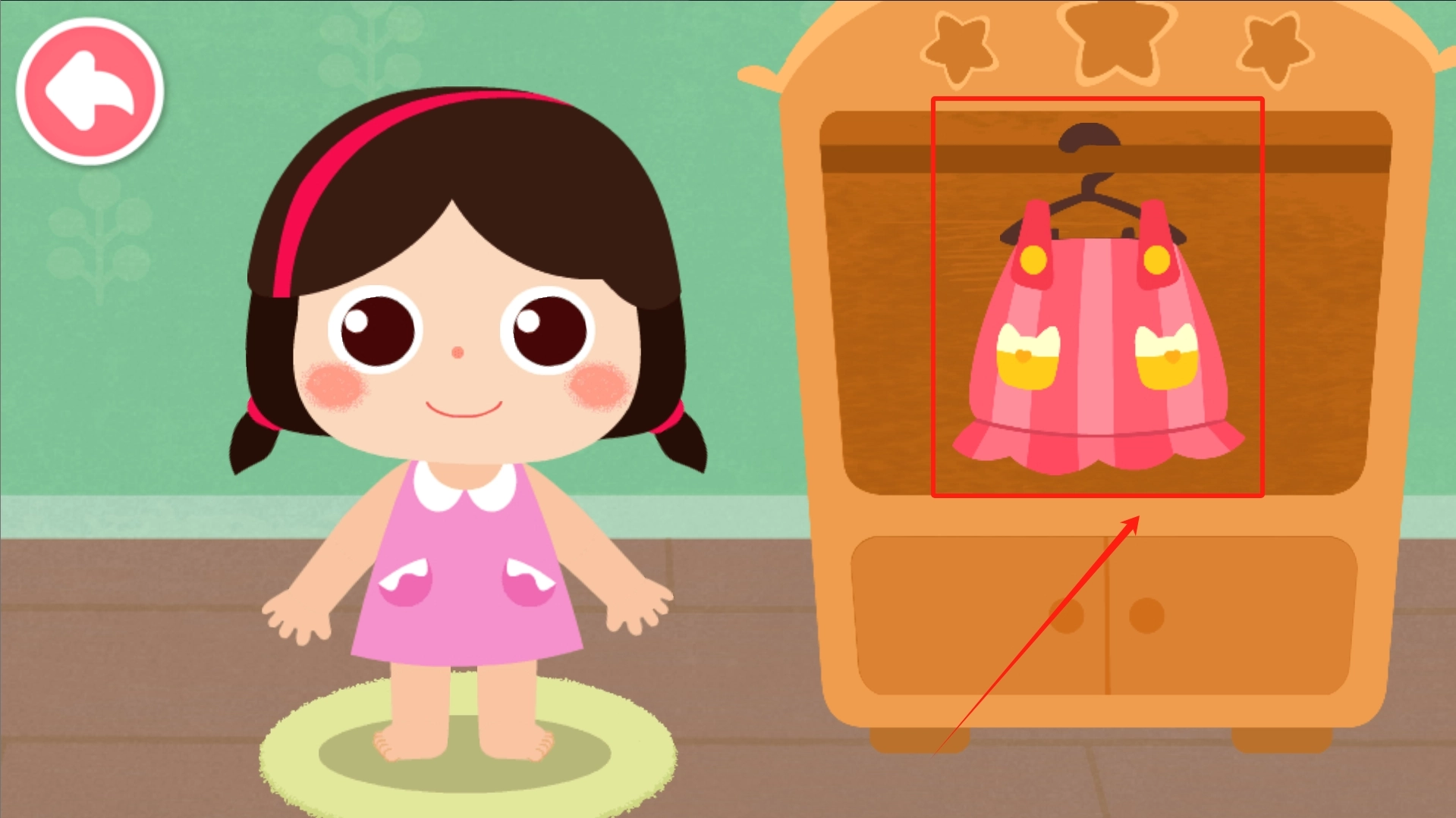 3、游戏开始,需要帮助宝宝进行穿衣服,拖动衣服,就能给宝宝换上衣服了。