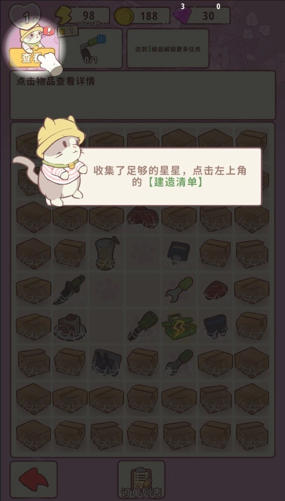 5、收集足够的星星,点击左上角的建造清单来建造庄园