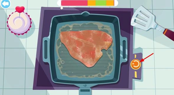 4、牛排腌制好之后,把它放入煎锅,点击右下角的开关,开始煎牛排。
