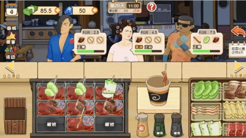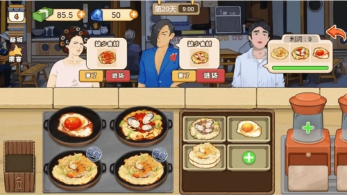 1、基础经营流程完成从进货、备料到烹饪、服务的完整经营环节,保证摊位正常运转。