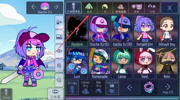3、我们首先打造一个自己喜欢的角色,你可以修改身体、头、服装等;