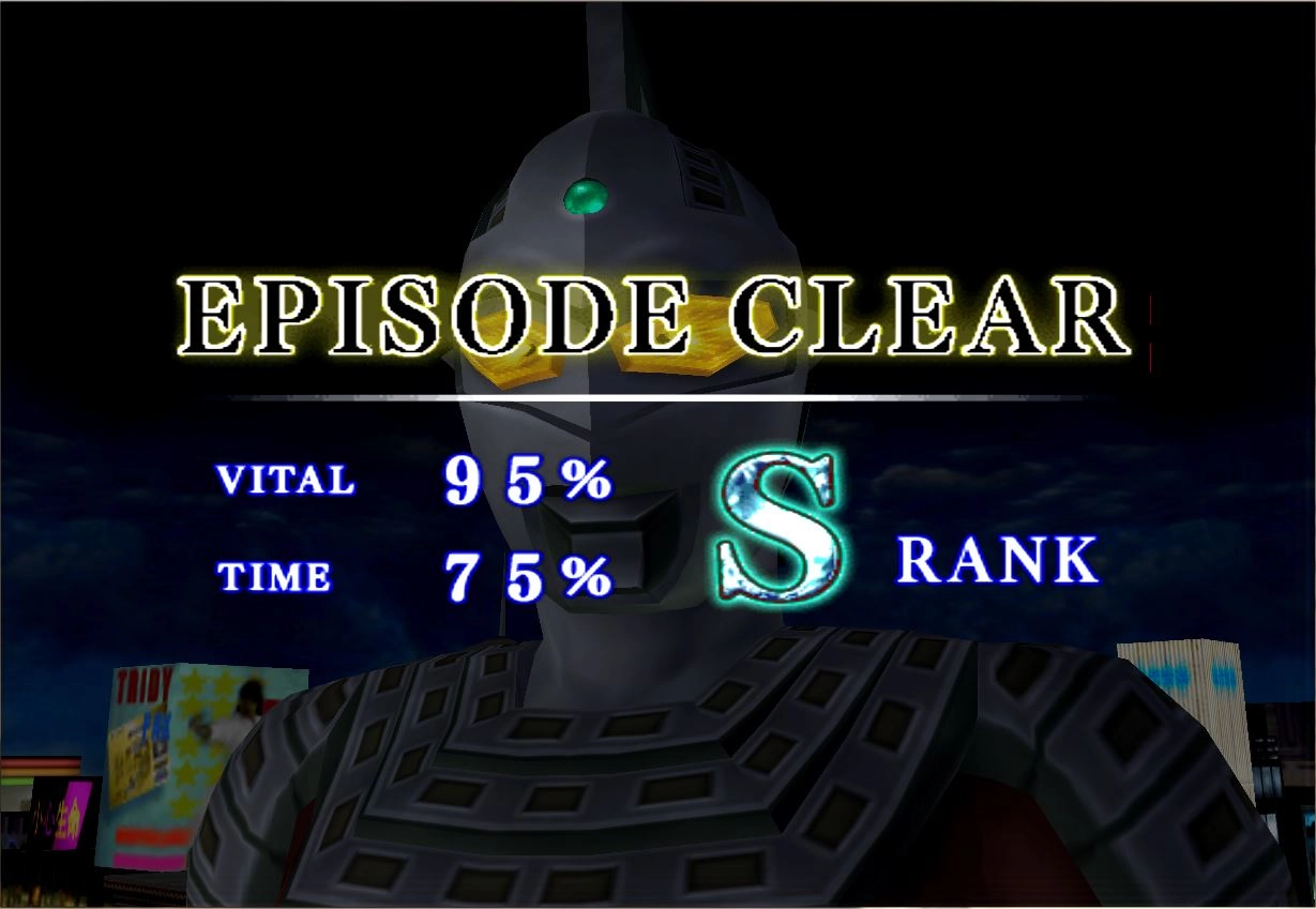 一开始是打飞船游戏,将飞船打到50%后,就成了赛文和巴尔坦星人的决斗,打的时候尽量用前+O,在2:30左右就赢了,但不知道为什么有时S条件都达到了却是B