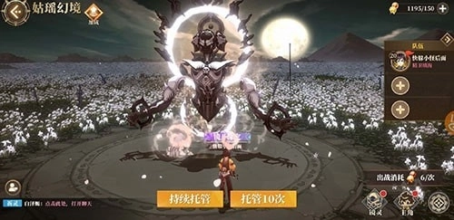 之后再进入战斗的时候进行排兵布阵,然后就可以进行托管了,目前托管主要有两种,一直就是连续托管,另外一个就是十连托管。需要玩家消耗很多的体力。
